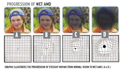 AMD dotyka głównie osoby starsze i prowadzi do utraty centralnego widzenia. Objawy to zamglone widzenie i zniekształcenia obrazu. Leczenie obejmuje suplementację witaminami, zastrzyki do gałki ocznej oraz terapie laserowe.